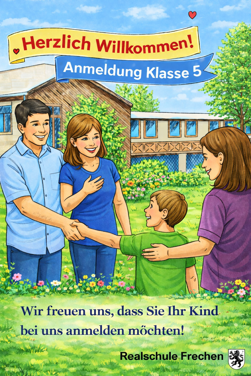 - Der Anmeldezeitraum für die neue 5. Jahrgangsstufe im kommenden Schuljahr ist vom 23.02.2026 bis 13.03.2026 und findet täglich von 8:00 bis 14:00 Uhr im Forum der Realschule statt. Das Mitbringen des Kindes ist nicht verpflichtend. Zur Anmeldung werden der ausgefüllte Anmeldebogen (Download), vier Ausfertigungen des "Anmeldescheins" im Original, das letzte Zeugnis (Klasse 4.1) sowie der Impfnachweis benötigt. Wir freuen uns schon jetzt riesig auf Ihre Kinder.